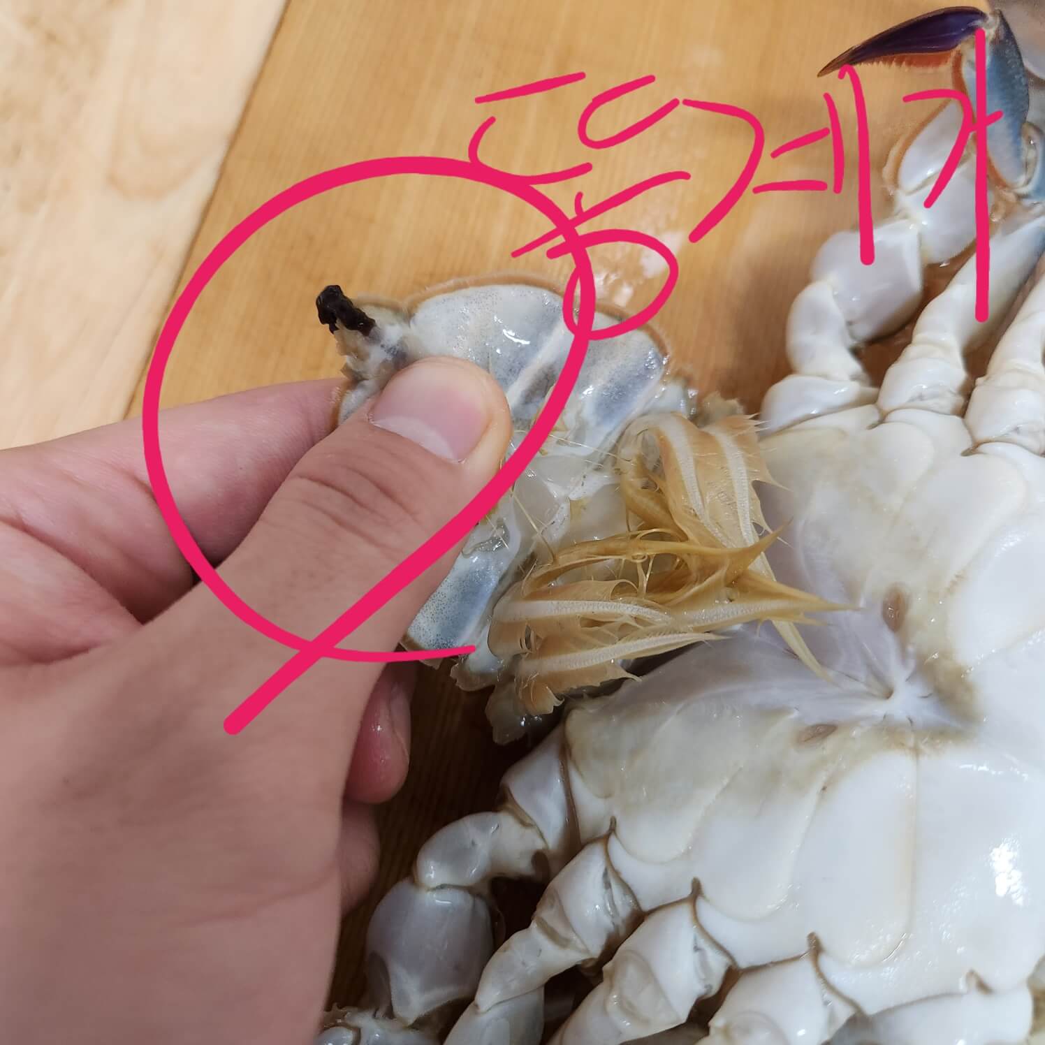 ✔✔살아있는 활게를 모르고 손질하면 집게에 물릴 수도 있어서 중요합니다. 아무것도 모르는 상태에서 저는 해봤다가 집게 공격을 받은 적도 있습니다.