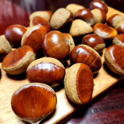 2. 밤의 아래부터 하시지마시고 맨 위에 뾰족한 부분부터 잘라서 껍질을 벗겨주시면 일차적으로 완성입니다. 하나하나 열심히 까주시면 됩니다. 수량이 너무 많이 되시면 가족 또는 지인, 애인과 함께 얘기하시면서 하시면 좋습니다.