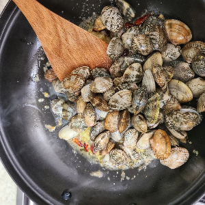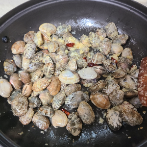 👉👉마늘이 갈색으로 변한다면 바지락을 넣어준다.