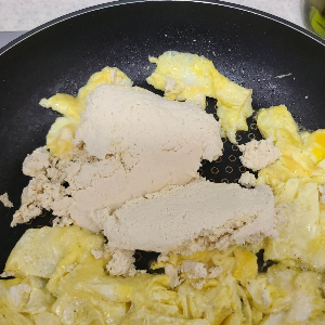 ✔✔두부는 면포로 물기를 꼭 짠 다음에 계란과 함께 볶으고 계란과 섞였다 싶으면 소금을 1 티스푼을 넣고 다시 볶아 줍니다.