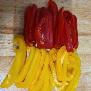 2. 파프리카는 반으로 갈라서 씨을 제거 해준 다음에 채 썰어주세요.