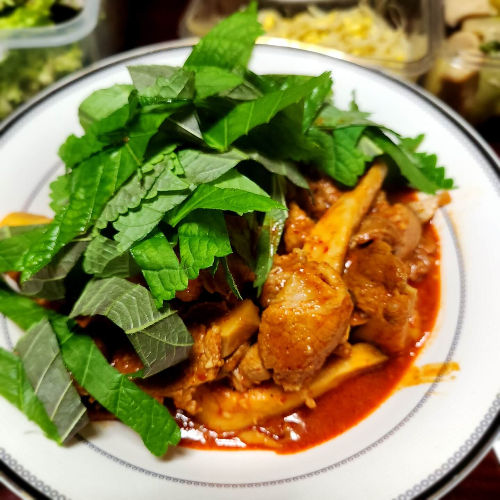 5. 깻잎이 있으신 분들은 깻잎을 가위나 칼로 잘라서 제육볶음 위에 올려서 쌈 싸서 드시면 깻잎 향과 제육볶음이 잘 어우러져서 맛있게 식사하실 수 있을 것 같습니다.