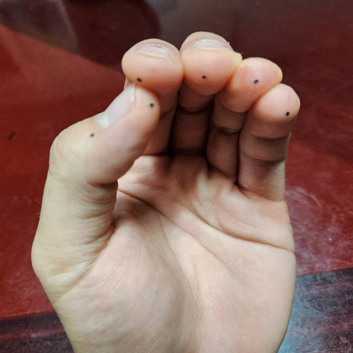 손톱이나 이쑤시개같이 끝이 가느다란 물질을 이용해 꾹꾹 눌러서 지압을 해주시면 됩니다. 만약에  증상이 심할 경우 소독된 뾰족한 물건으로 찔러 피를 내주시면 됩니다.