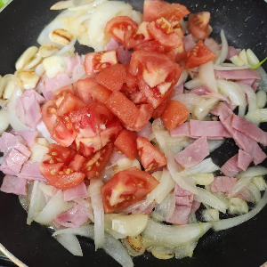 기름이 생기면 토마토를 넣고 열을 가해주세요.