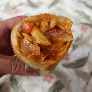 소금빵에 스파게티 소스 넣어 먹기