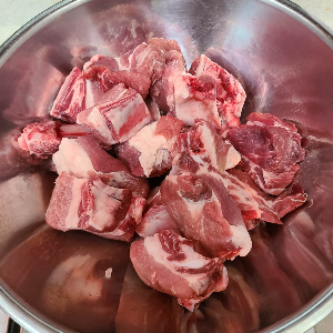 2. 돼지갈비를 한번 끓이고 나서 2번 정도 헹궈주는데 갈비에 붙은 많은 비계가 있으면 제거해 주시면 됩니다.
