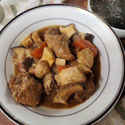 - 양념 : 당근 반 개(140g), 새송이 버섯 2개 (166g), 양파 2.5개 (335g), 다진 마늘 두 덩어리(133g), 소갈비 양념 70g