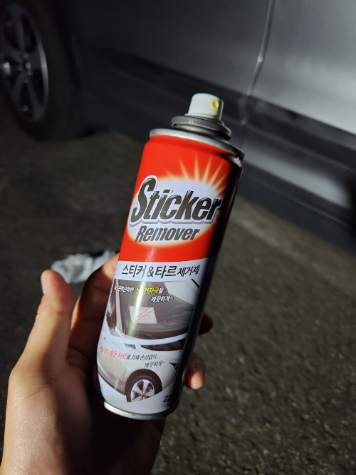 3. 카 페인트를 뿌리면서 테이프가 닿아서 일부가 녹아 끈끈이가 남아있어서 타르 제거제로 뿌려줘서 간편하게 제거했습니다.