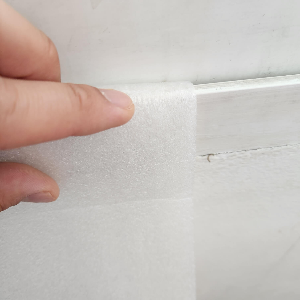 A. 사진은 창문틀에 "찍찍이"를 붙여놓고 "우레탄 필름 바람막이로 붙여주고 있습니다. 한번 쓰고 나면 잘 접어서 보관만 잘하면 매년 쓸 수 있는 소중한 아이템입니다.