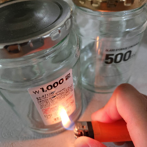1. 제가 이용하는 방법으로 불을 활용해서 유리병의 스티커를 제거해주시면 됩니다.