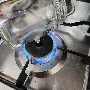 4. 열탕을 할 대처럼 유리병을 마르는 게 아니라 위로 가게 해서 약불로 5분 마무리해주시면 빠르게 자연 건조를 시킬 수 있습니다.
