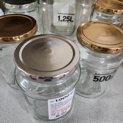 다이소나 그릇가게에서 유리병을 사고 나면 항상 스티커가 붙어있어서 너무 싫지 않으세요?  제 성격상 스티커가 붙어 있으면 제거를 해야지 마음의 안정을 찾는 스타일이라 항상 제거를 하고 있습니다.