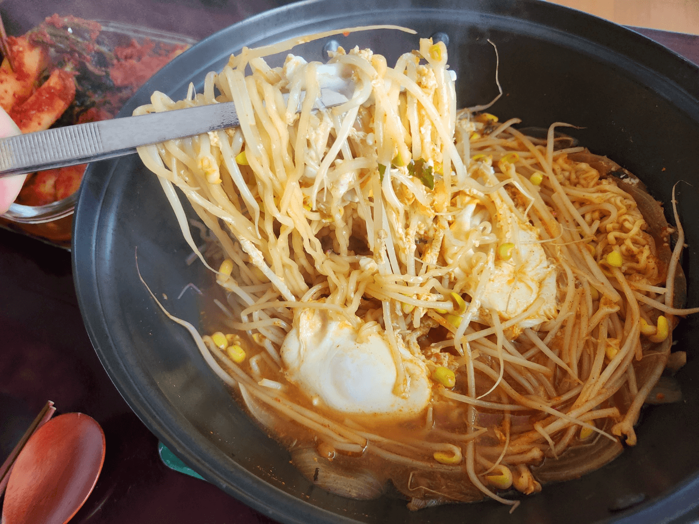 저는 곱슬이 콩나물보다는 일장 콩나물을 선호하는 편이에요. 먹기가 너무 편해서 선호하고 있습니다. 이에 잘 껴서 불편하신 분들 계시면 일자 콩나물로 한번 드시면 식감이랑 뒷일이 편해서 좋으실 것 같습니다.