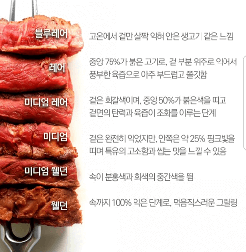 저는 개인적으로 미디엄 레어에서 미디엄이 넘어가는 사이가 가장 맛있는 거 같아요.