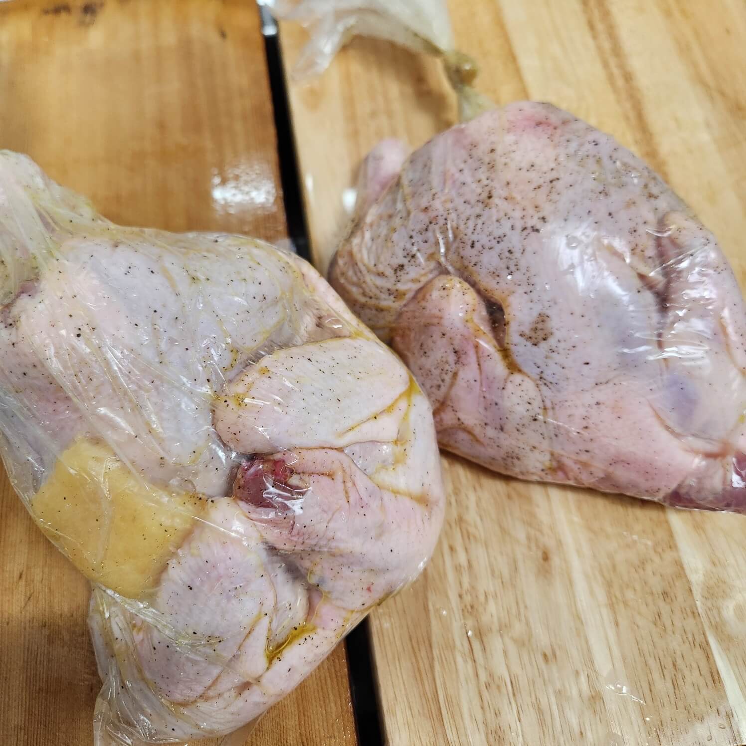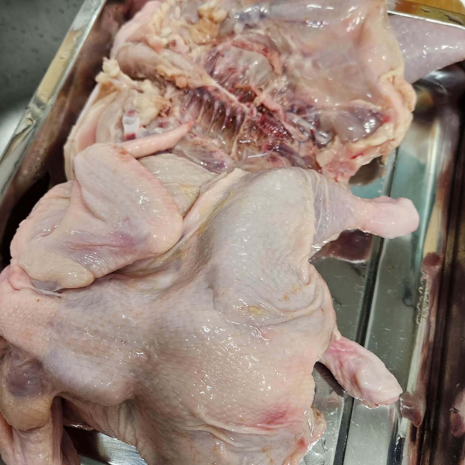 2. 수비드를 하기위에서 닭을 반으로 갈라서 벌려주시면 돼요.