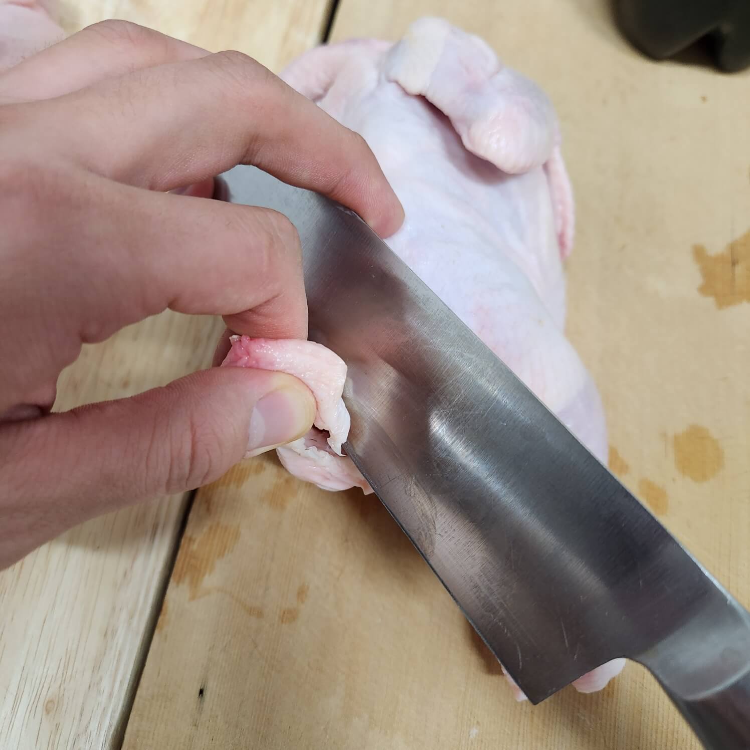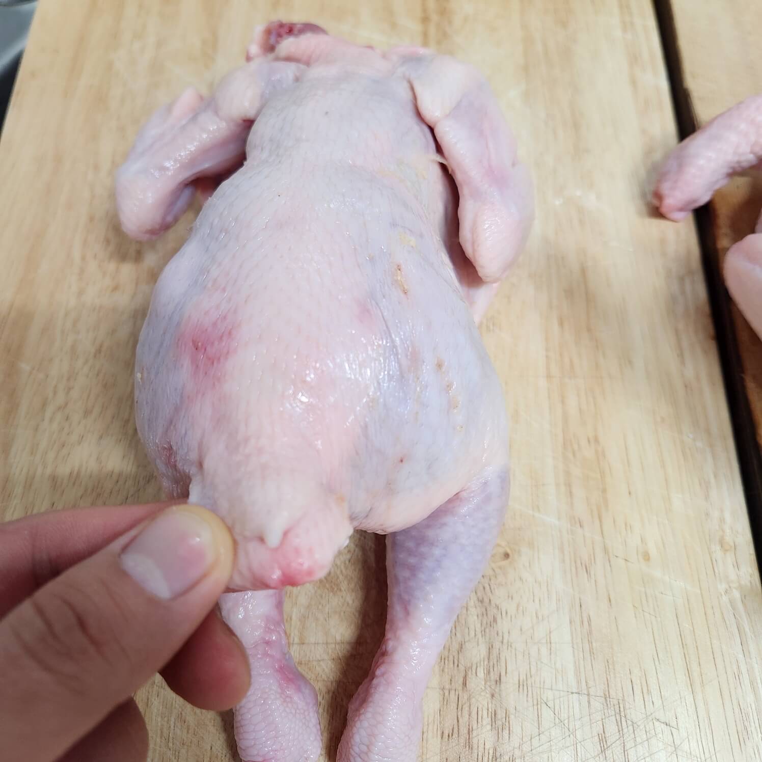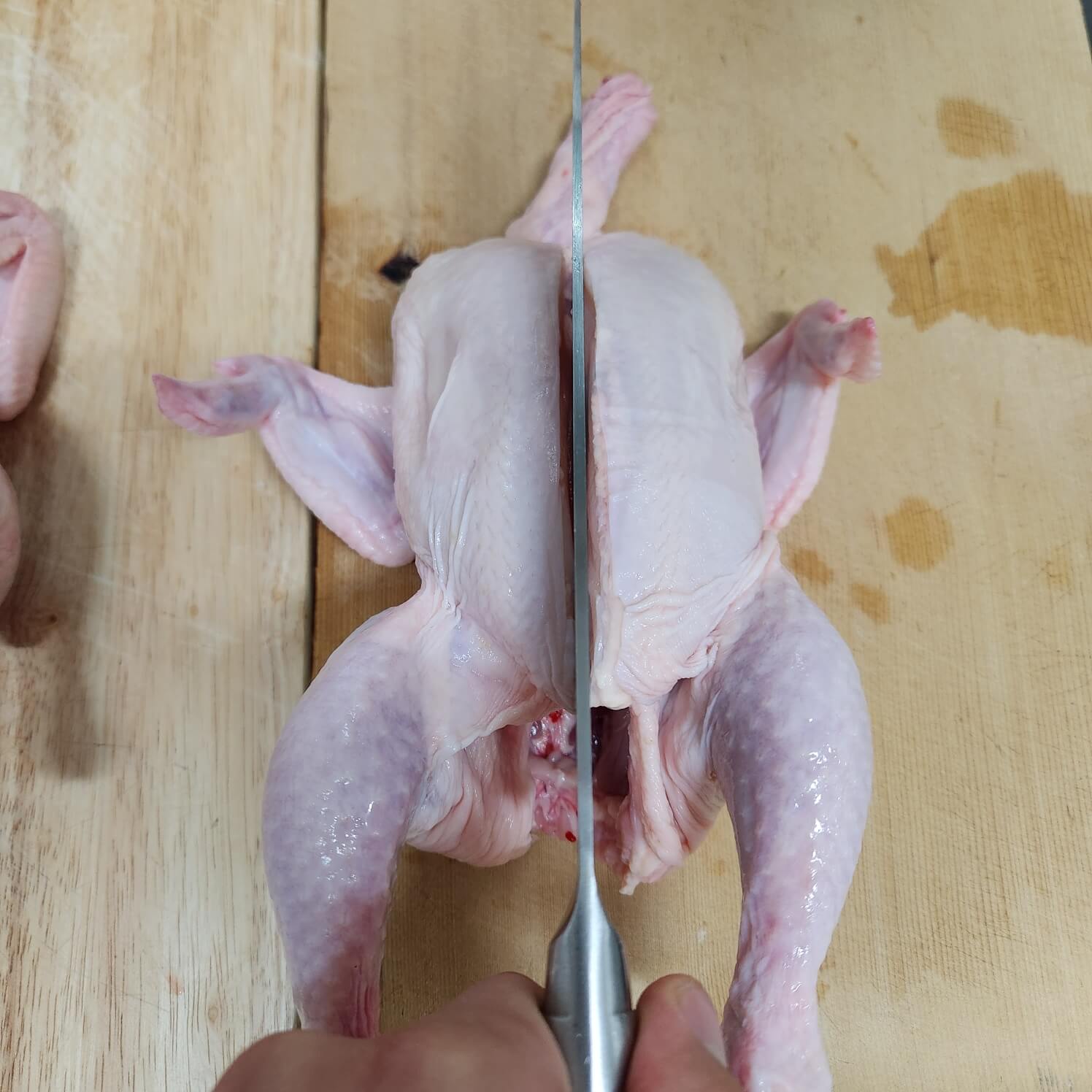 👉닭은 뒤집어서 3번째 사진처럼 엄지로 눌러주시면 돼요.
