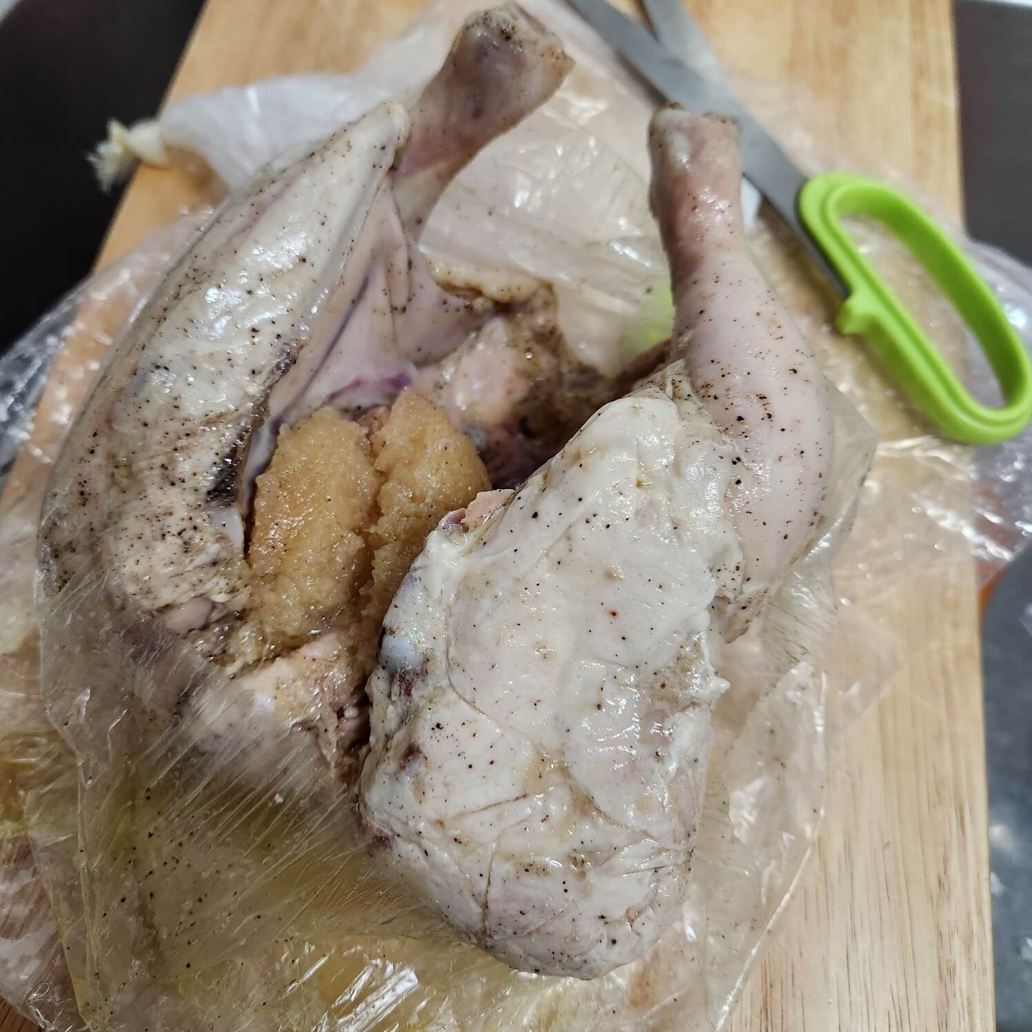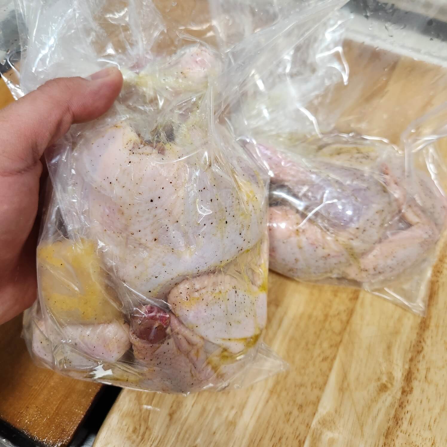 👉닭 뼈 때문에 비닐이 찢어질 수도 있어서 지퍼팩에 넣어서 한 번 더 공기를 빼고 밀봉시켰어요.