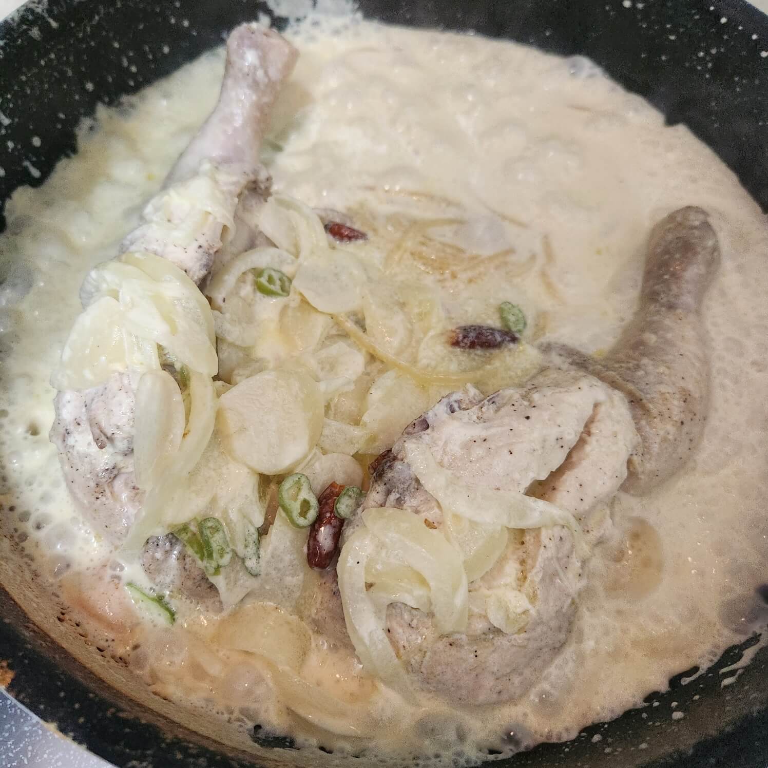 👉제 요리 방식 부분은 치킨 뼈 부분만 덜 익어서 이 부분을 크림소스와 같이 익혀줄 거예요.