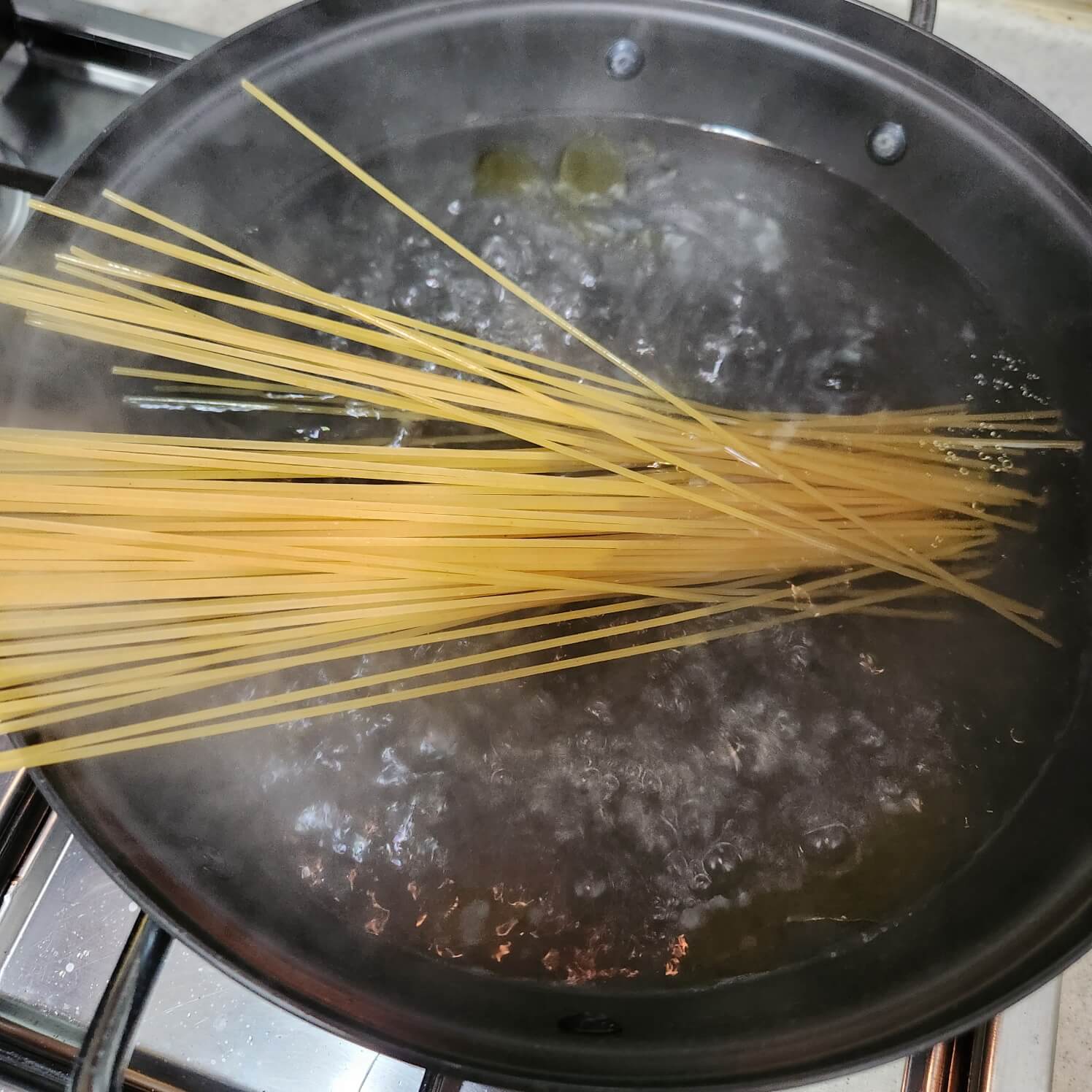 👉저는 귀찮아서 같이 넣고 익혀줬어요. (스파게티면은 오버쿡! 하지만 부드러워요.)