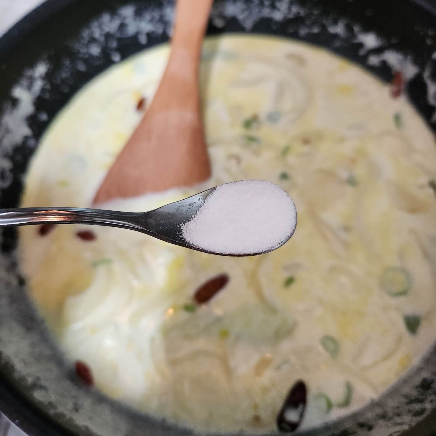 3. 소스가 끓기 시작하면 청양고추, 페페론치노, 소금 티스푼 1을 넣고 3분 끓여주시다가 꺼주시면 돼요.