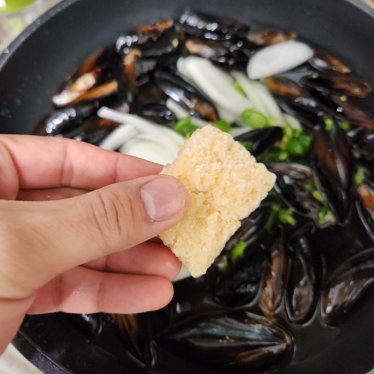 👉홍합을 덜어내고 홍합 씻은 물이 깨끗하면 먹어도 된다는 신호이다.