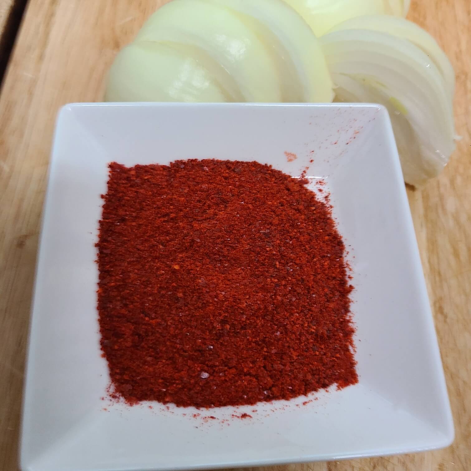 👉양파 280g, 숟가락 기준 소주 6, 고춧가루 3, 맛술 1, 물엿 1, 올리고당 1, 고추장 2, 들기름 3, 간장 8.5 (60ml)을 넣고 잘 섞어준다.