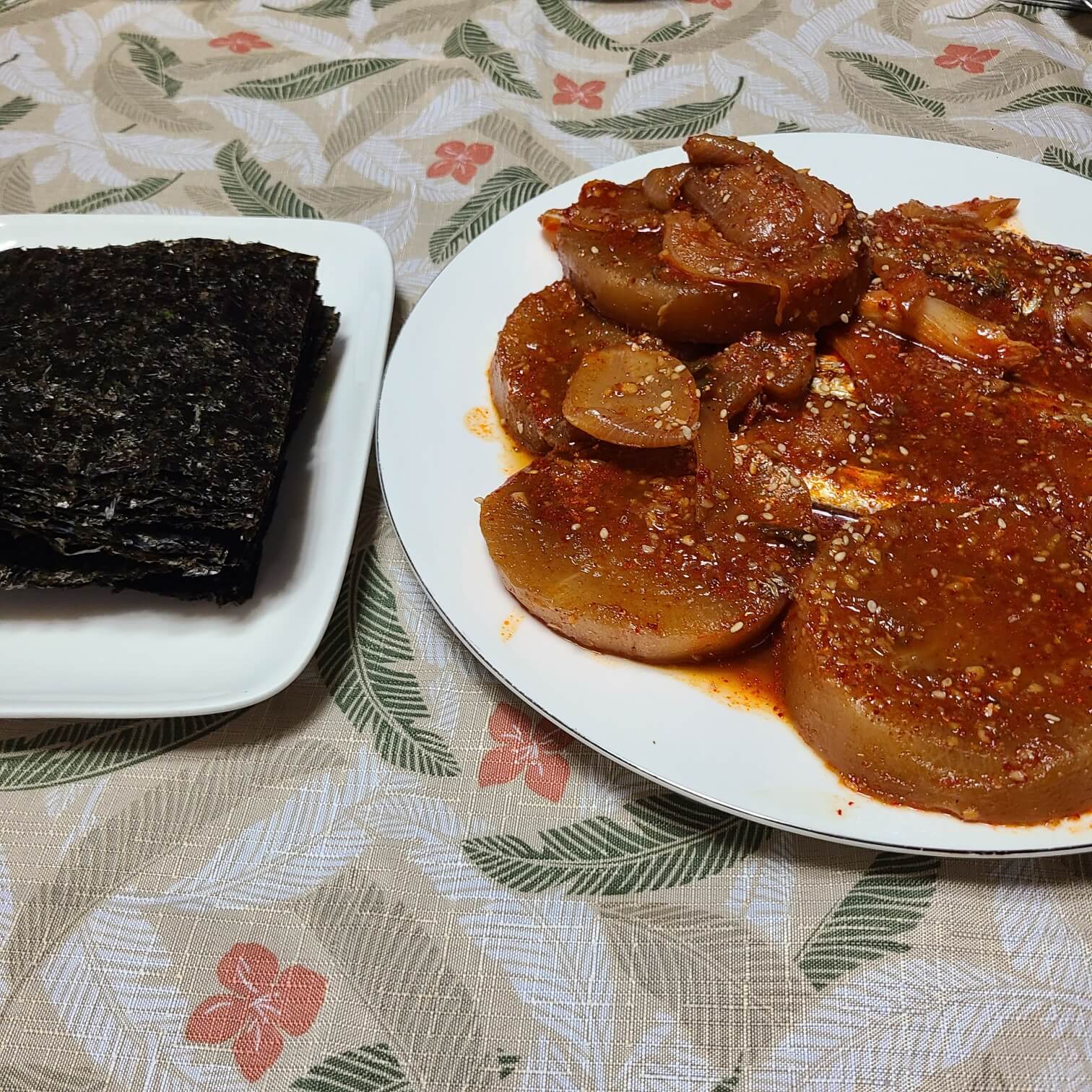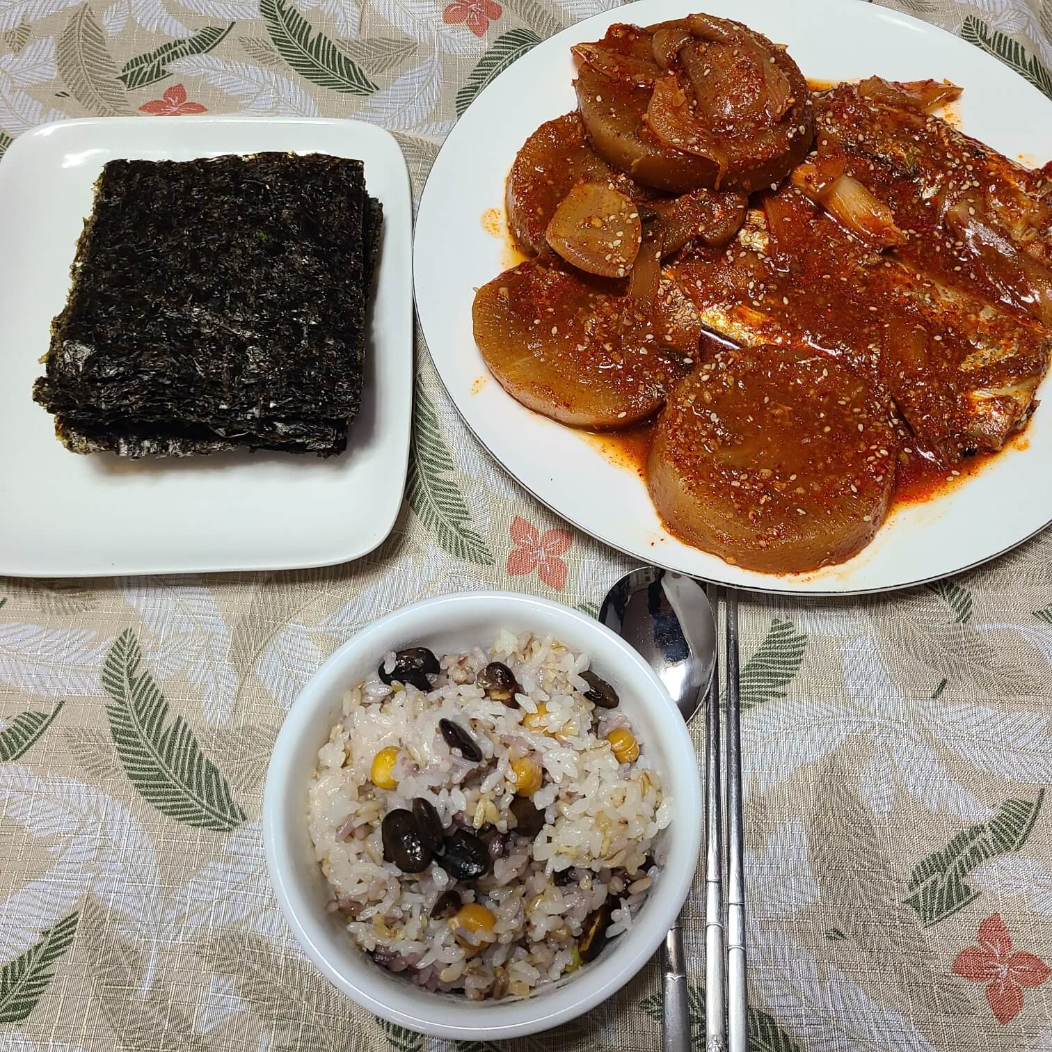 갈치조림이 완성됐다. 마른 김에 갈치를 잘 발라서 싸 먹으면 너무나도 맛있는 밥도둑이 된다.