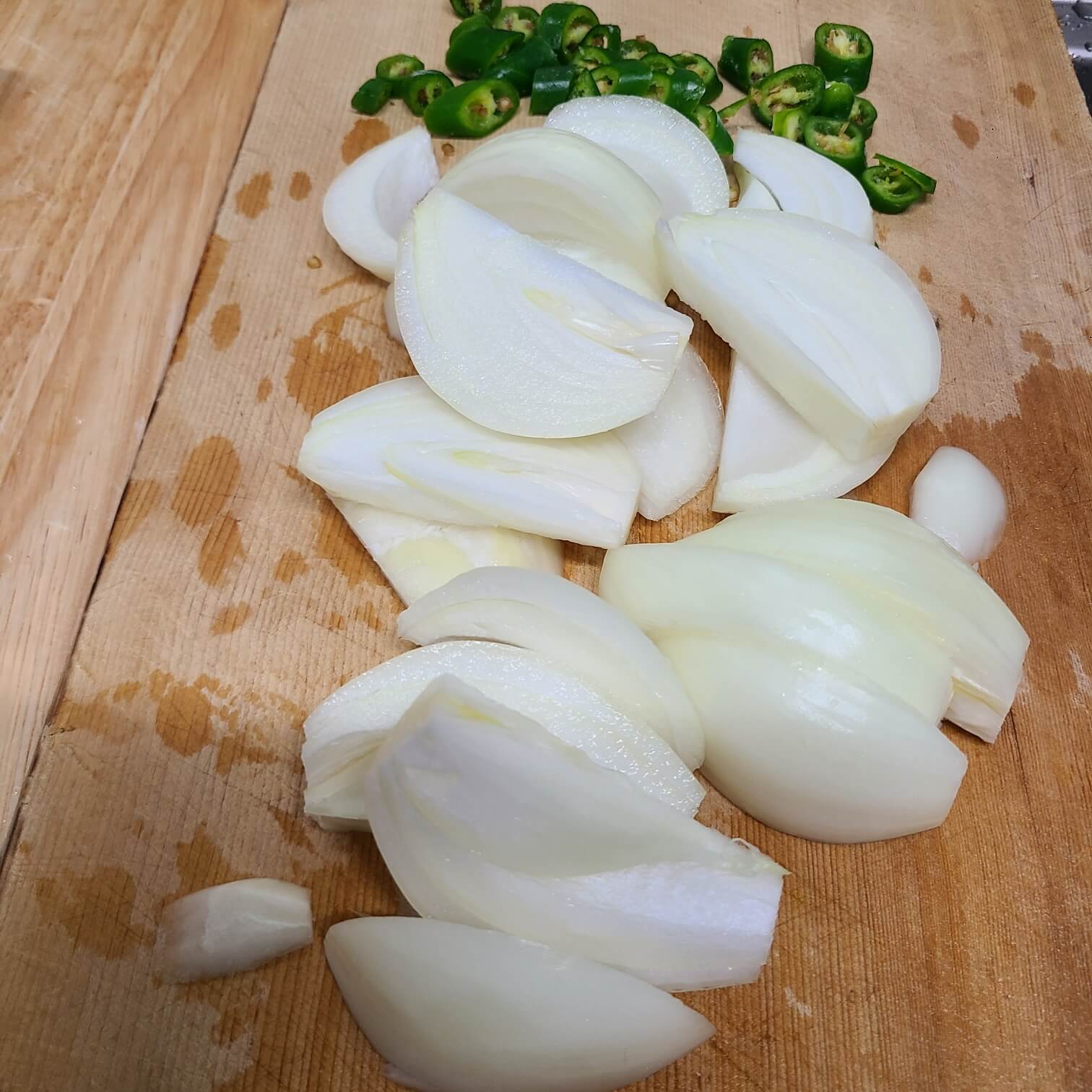 2.  양파1개는 두껍게 채 썰어주면 되고, 청양고추를 쏭쏭 썰기로 해서 준비해 주시면 됩니다.