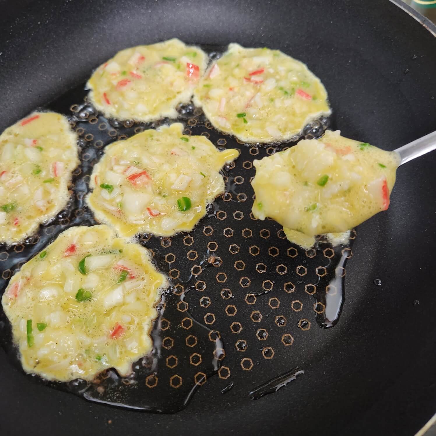 👉이때 밥전을 뒤집어 주시면 완성입니다.