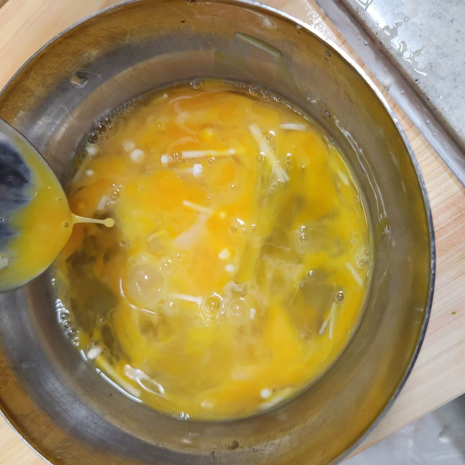 4. 계란 3개는 너무 많이 풀어주지 말고 흰자와 노른자가 안 섞인 게 보이도록 넣어주시면 됩니다.