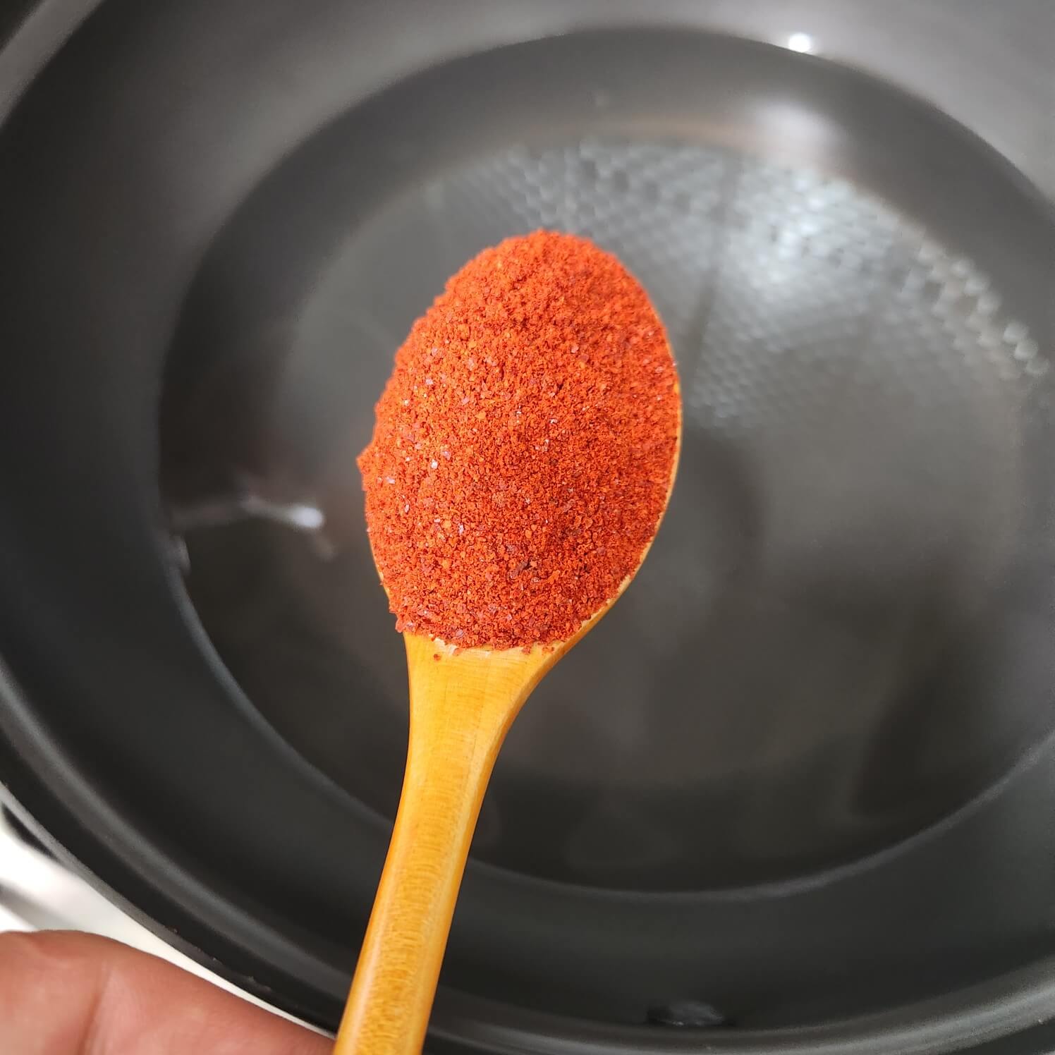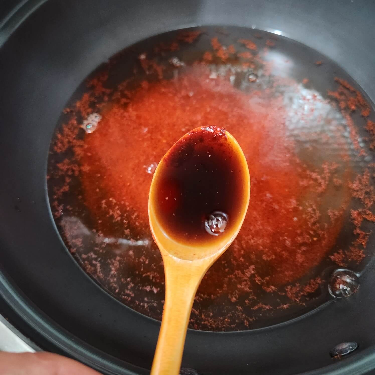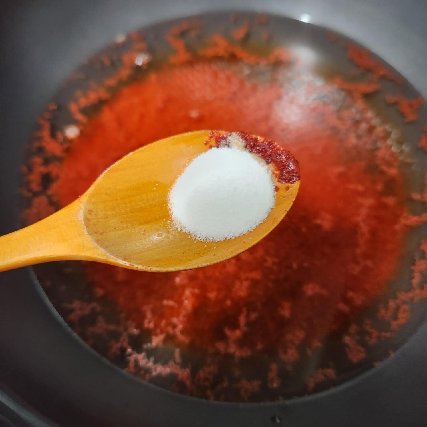 - 숟가락 기준으로 고춧가루 2, 간장 2, 소금 0.5, 후추 취향 것 (20번), 국수장국 가쓰오부시 2숟가락
