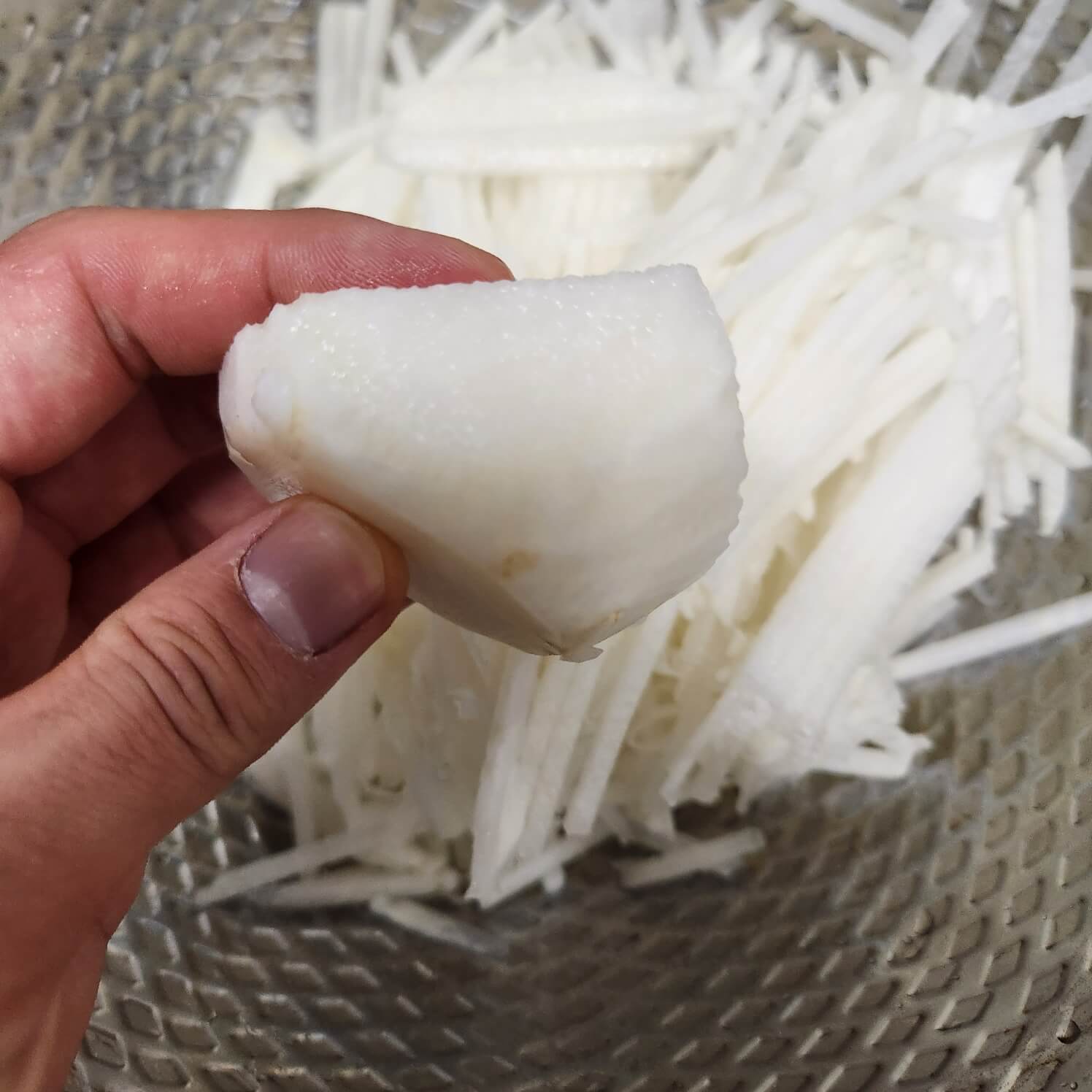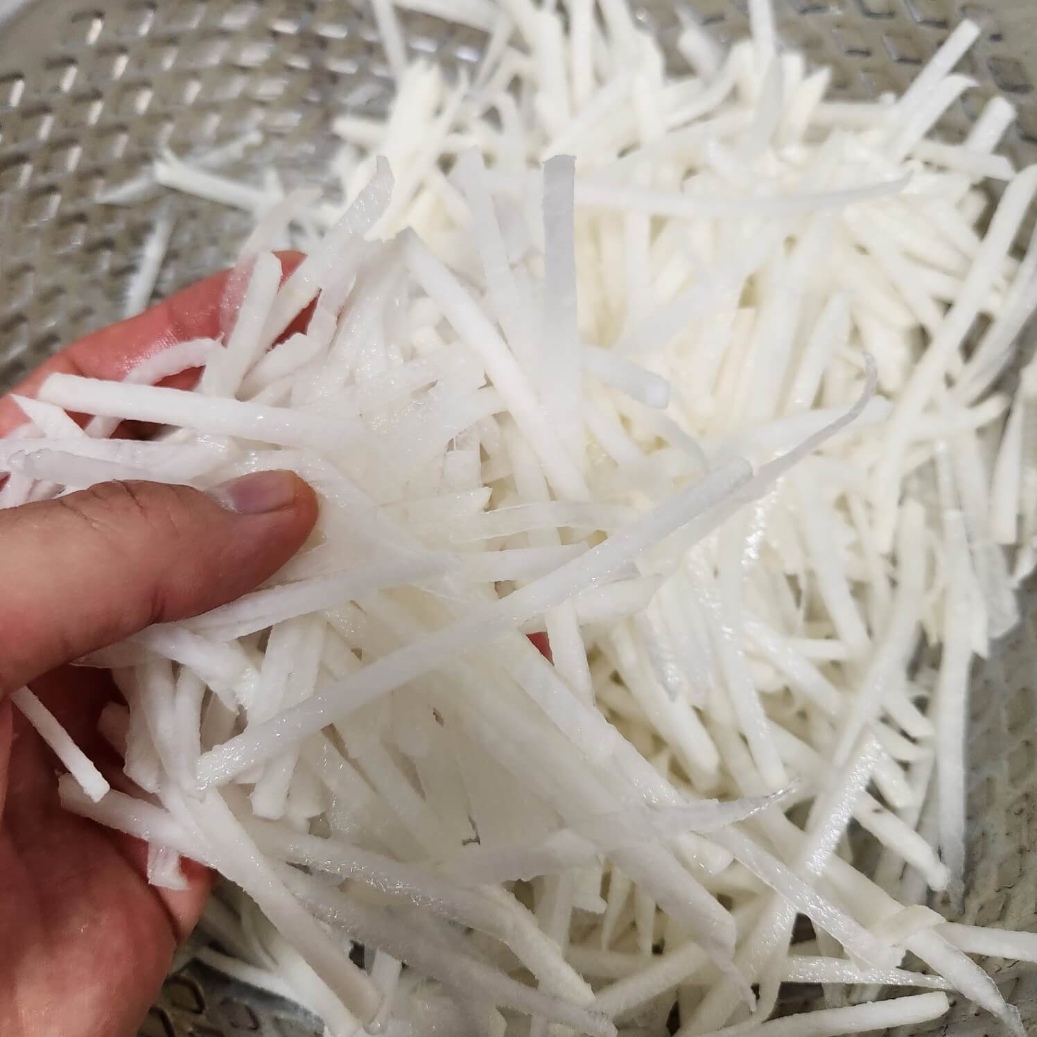 👉너무 짧은 무생채는 먹기 불편하니 자투리는 나중에 무육수로 활용해 주세요.