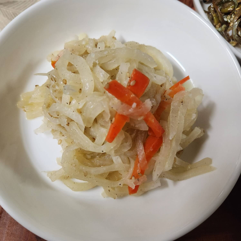 아삭아삭한 무나물은 밥이랑 그냥 먹어도 맛있어요.