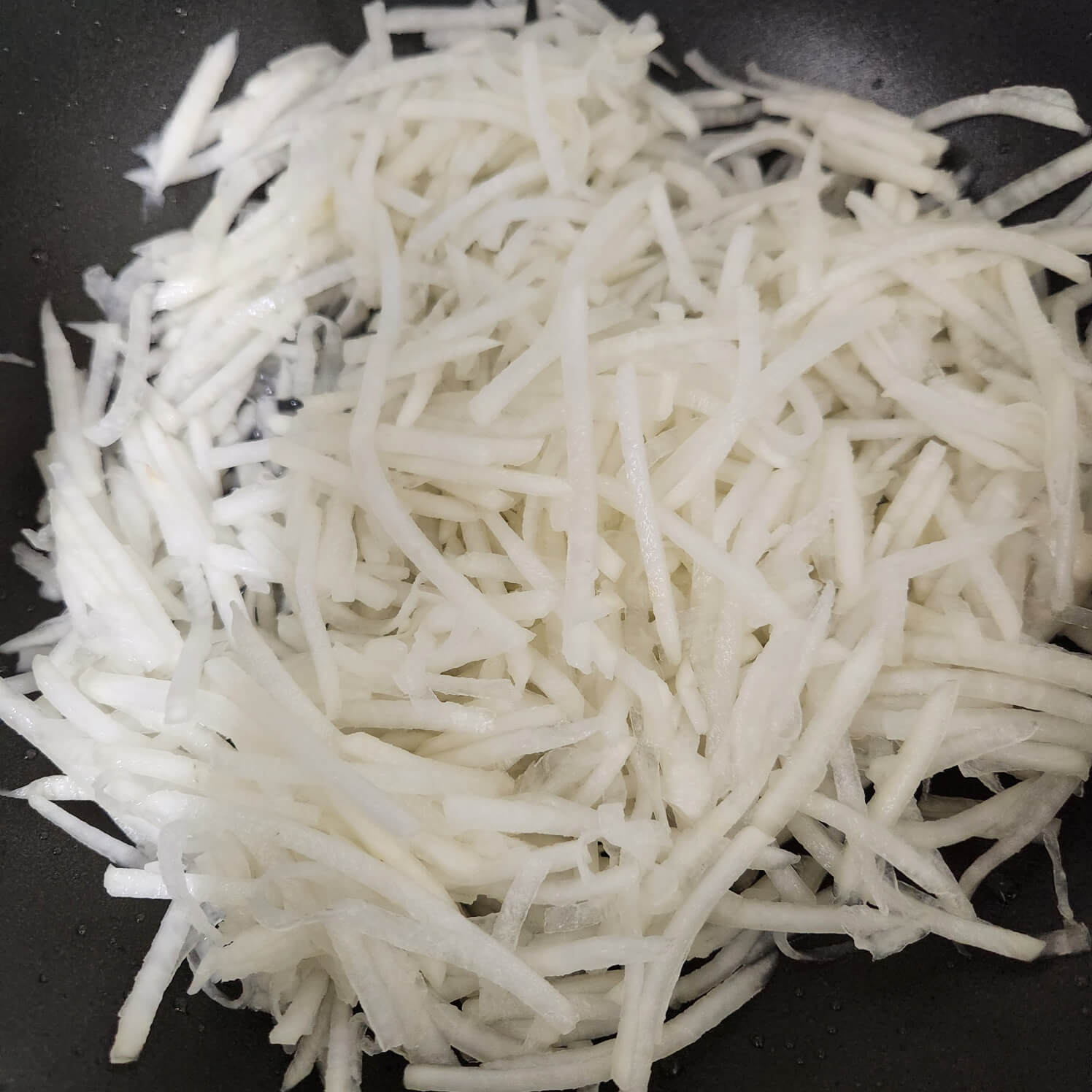 5. 마지막으로 센 불로 무나물을 마지막으로 볶아주시면 돼요.