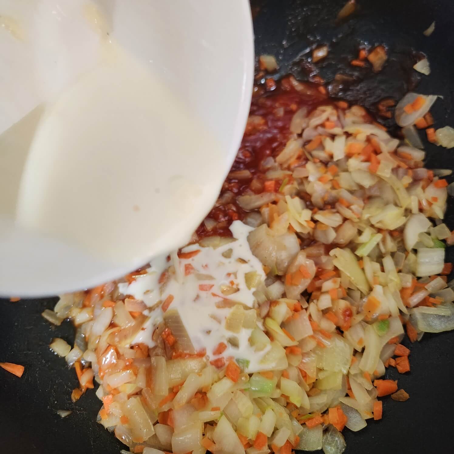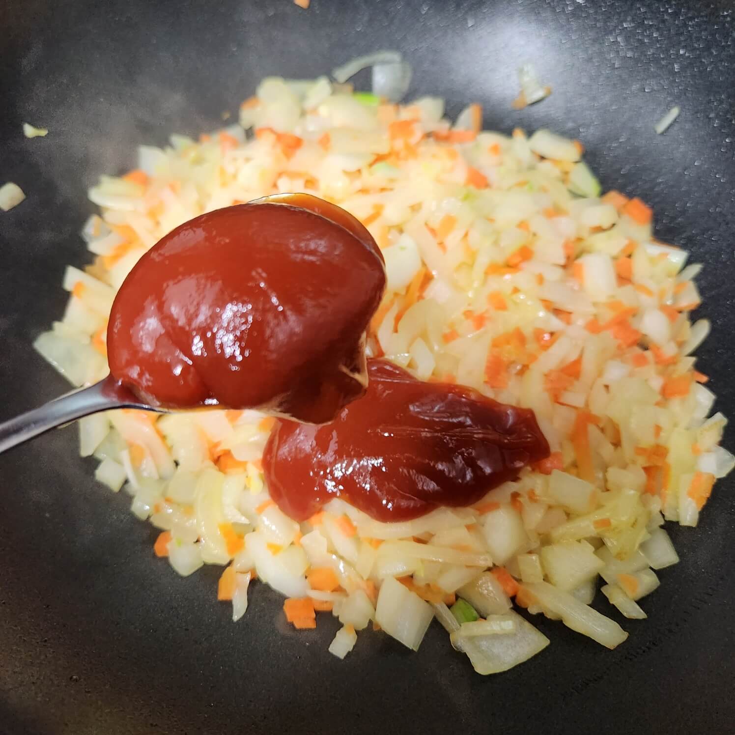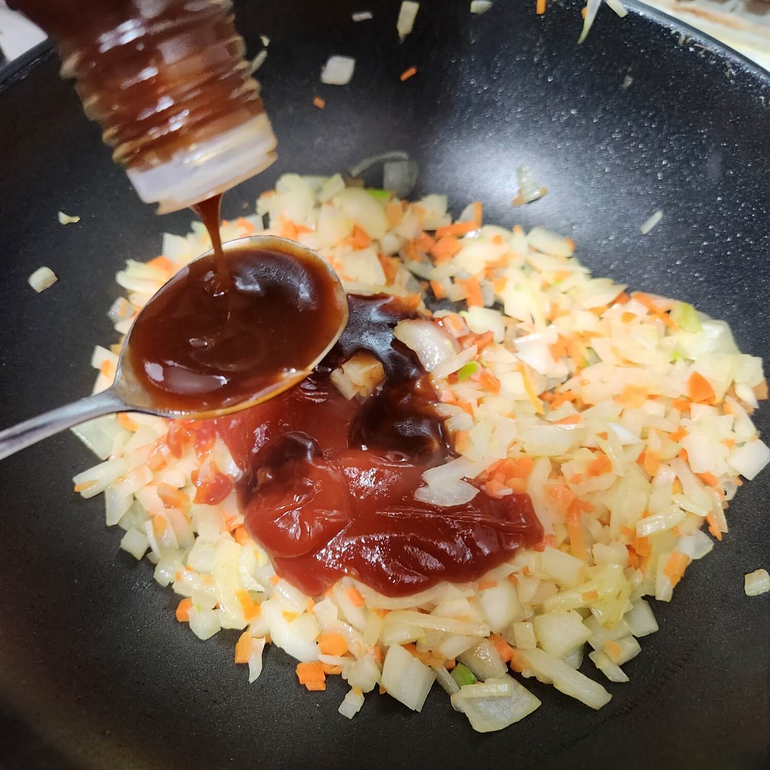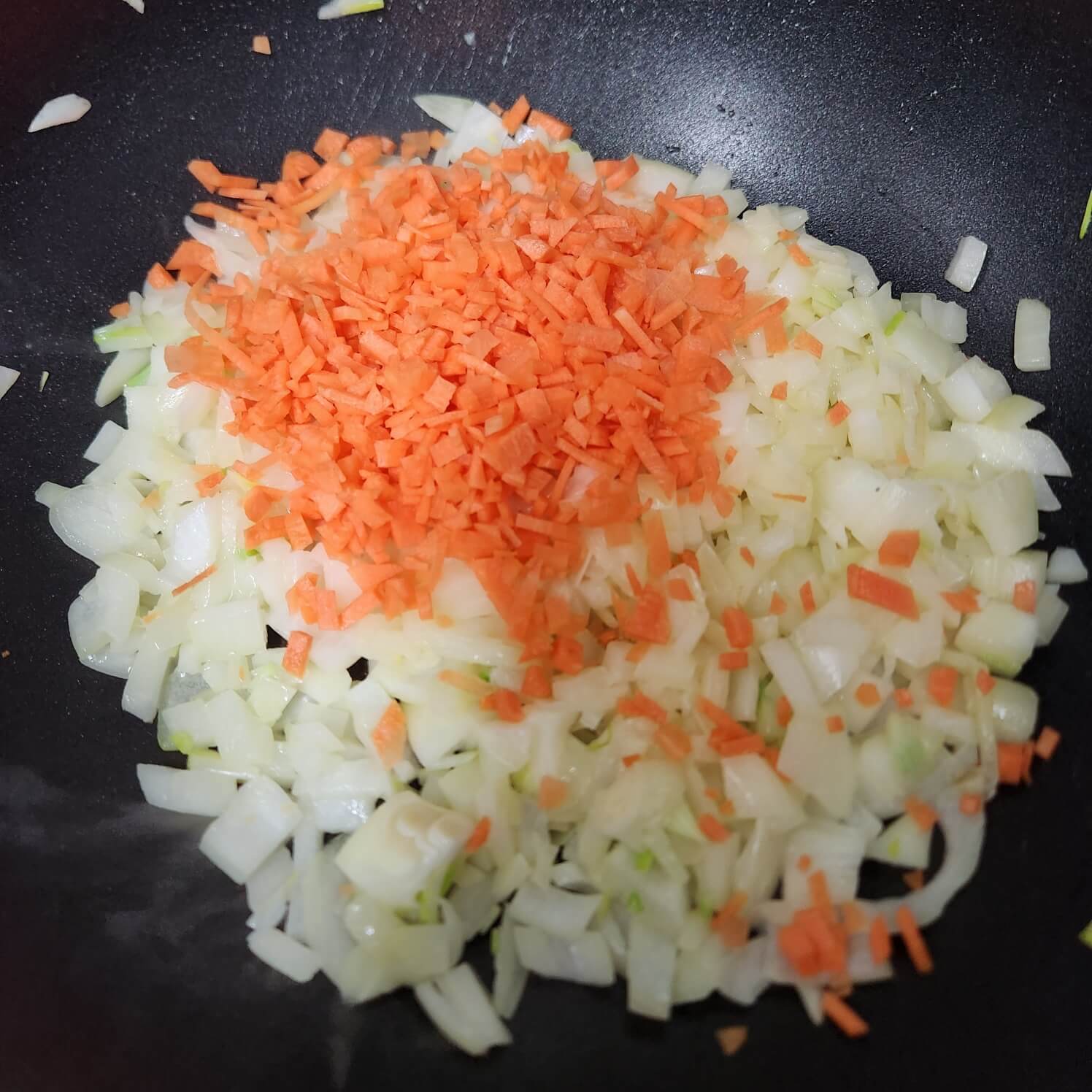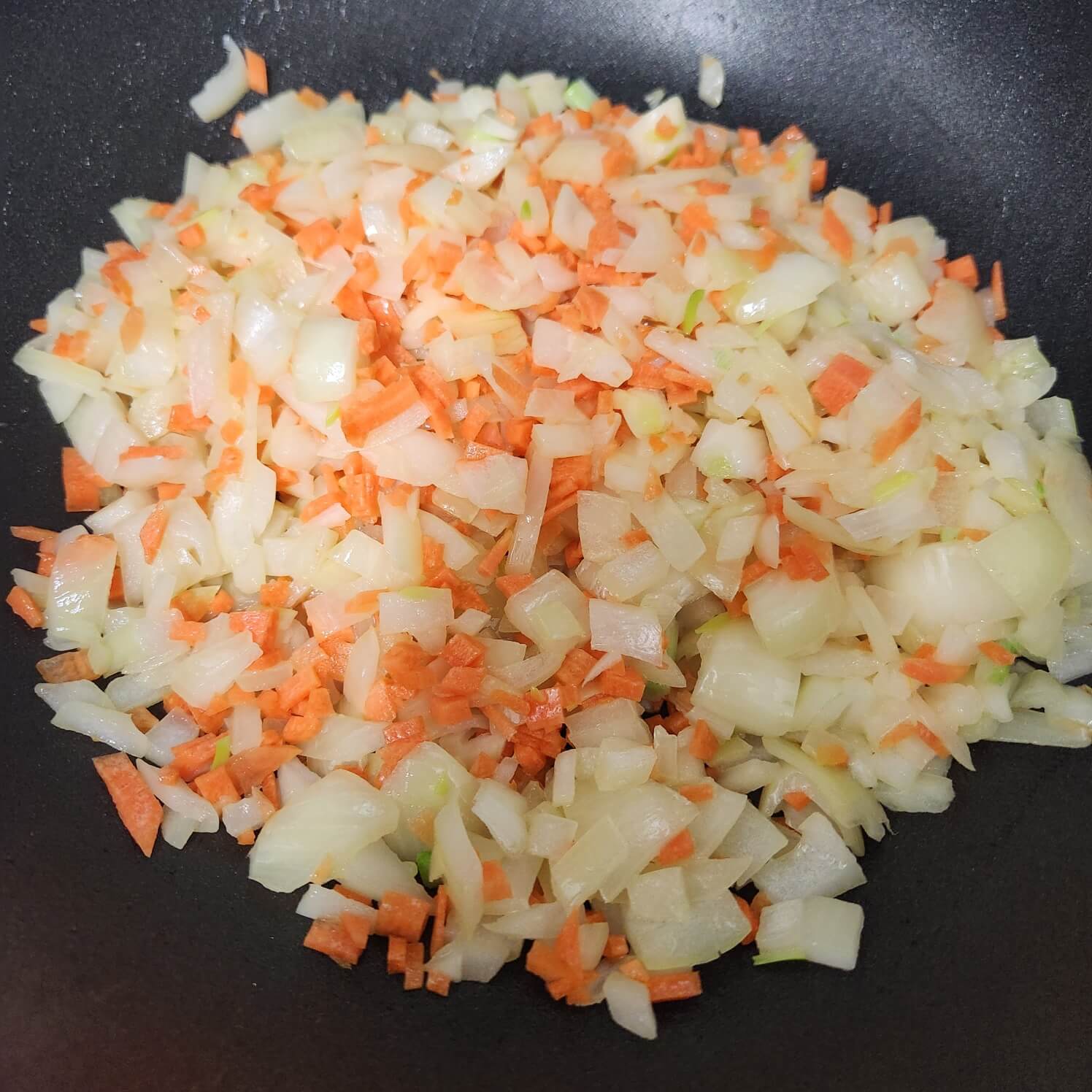👉👉양파가 갈색으로 바뀌면 당근을 넣어서 당근이 숨이 죽을 때까지 마저 볶아주세요.