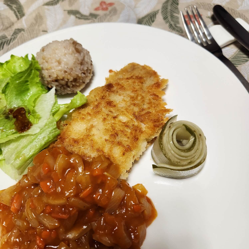 맛있는 돈가스 완성이에요.