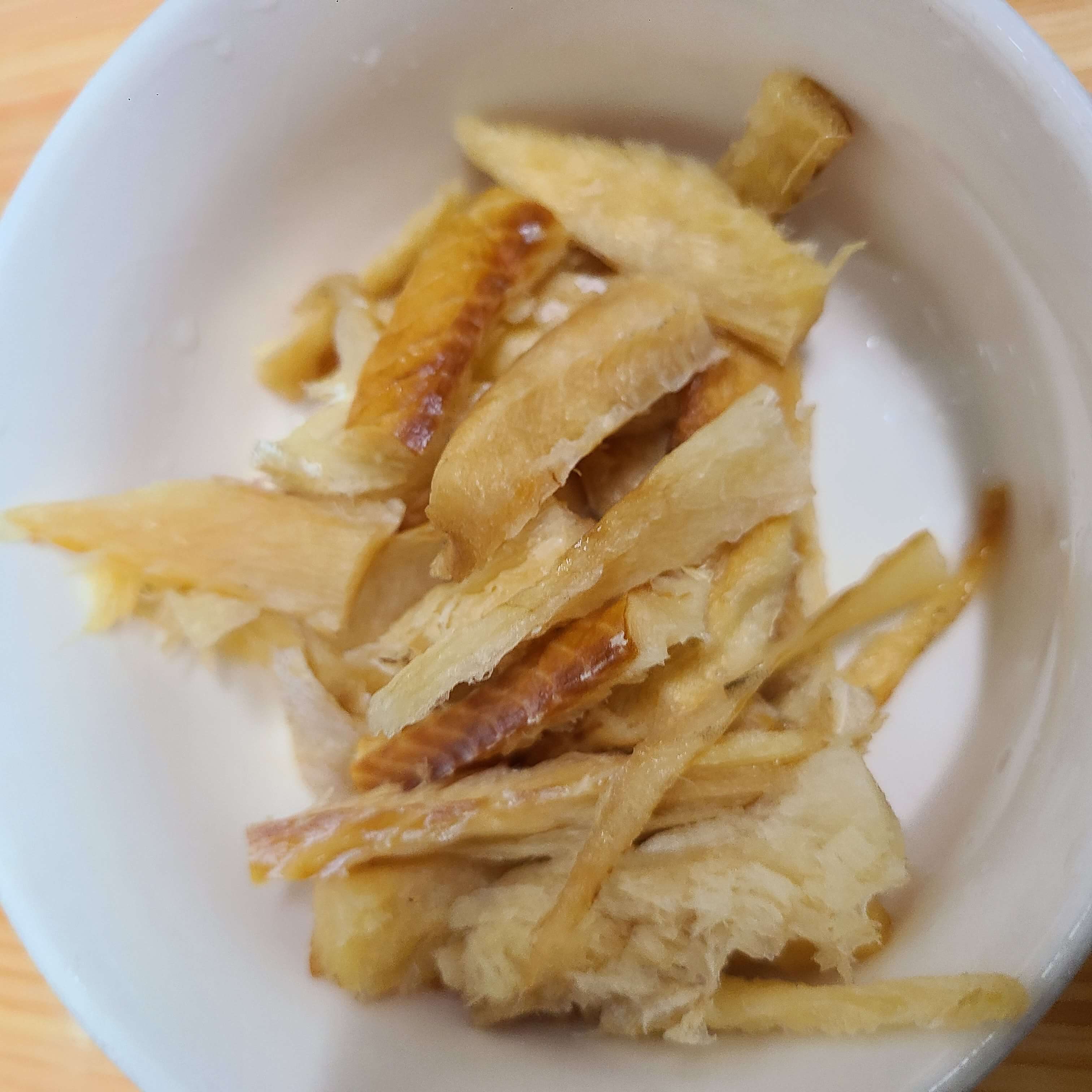 👉물에 5분 정도 담그고 나서 물 먹은 황태를 꼭 짜주면 된다.