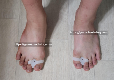 👉무지외반증 교정기와 실리콘 교정기를 병행하면서 스트레칭을 해주면 개선이 가능합니다.