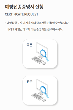 예방 접종 증명서가 필요하신 분들은 예방접종 도우미 누리집 바로가기 를 누르시면 아래와 같은 화면에 나옵니다. 필요하신 부분을 누르고 진행하시면 됩니다.