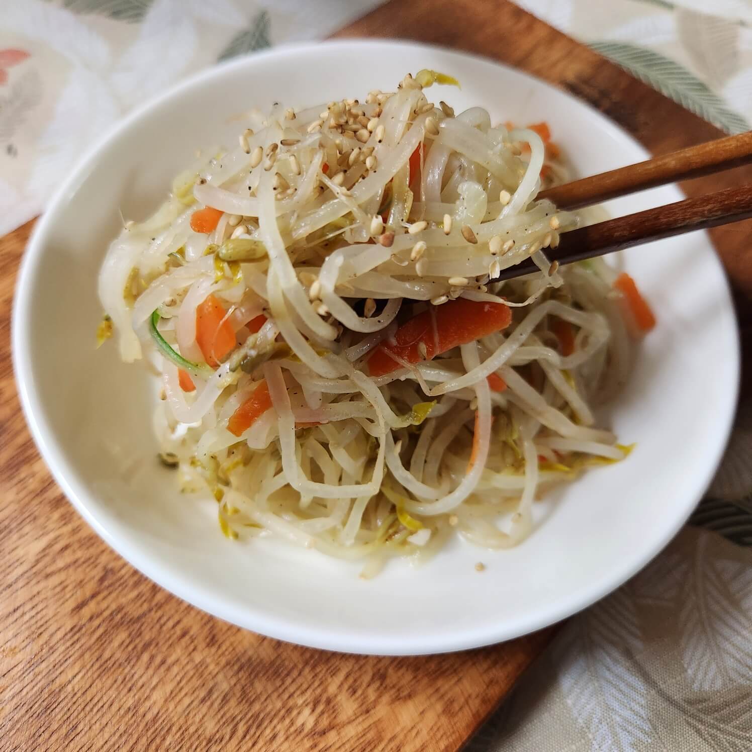 - 숙주 1팩 (600g), 당근 1/6 개, 양파 반개, 대파 조금, 다진마늘, 들기름, 소금, 후추