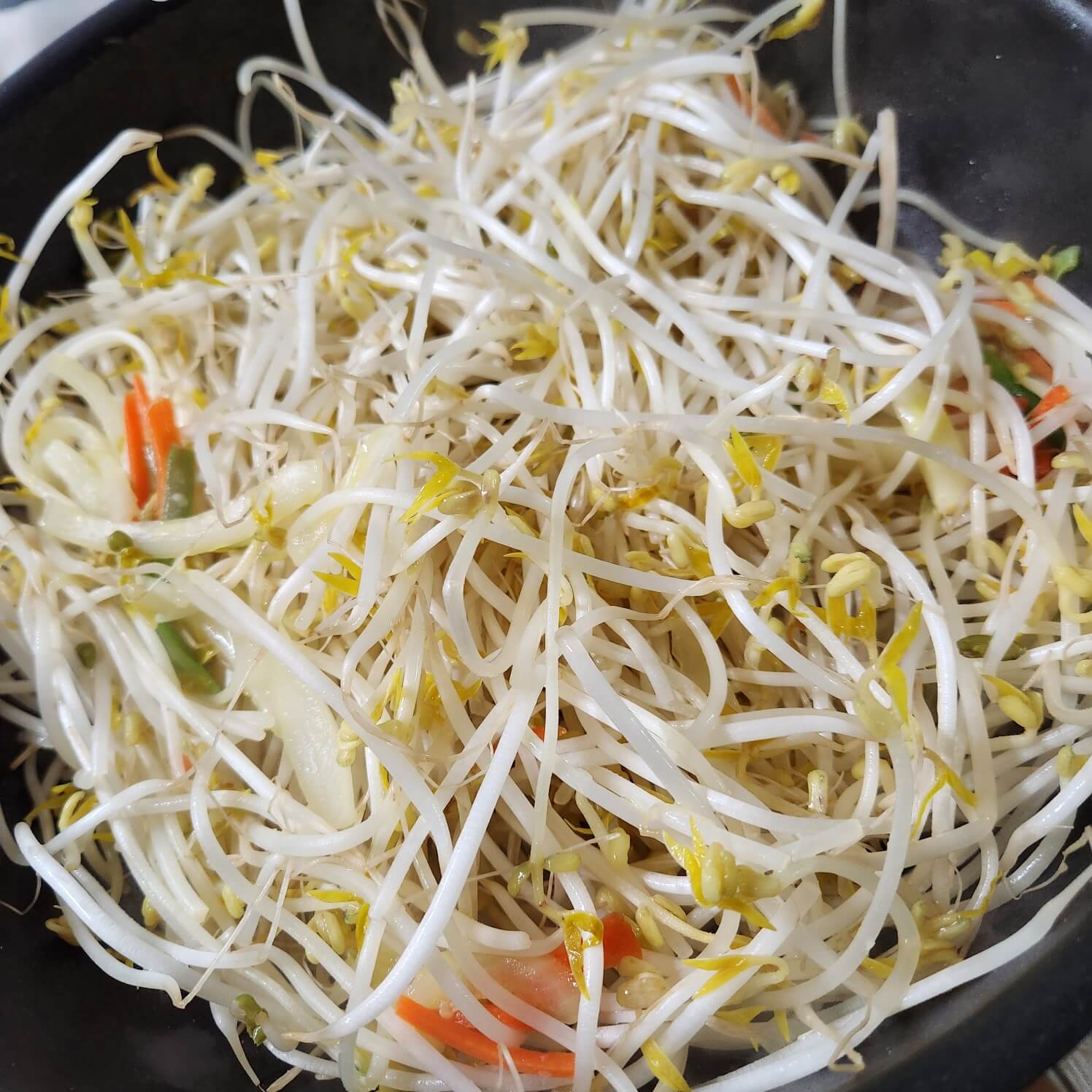 👉데치지 않고 숙주를 볶았기 때문에 아삭한 식감이 살아 있다.