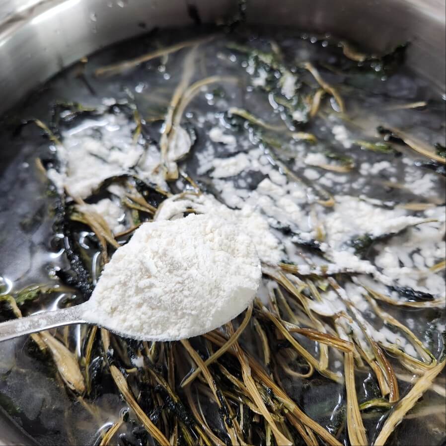 👉밀가루를 넣으면 시래기 삶는 시간을 단축시킬 수 있고 더 연하고 부드럽게 삶을 수 있다.