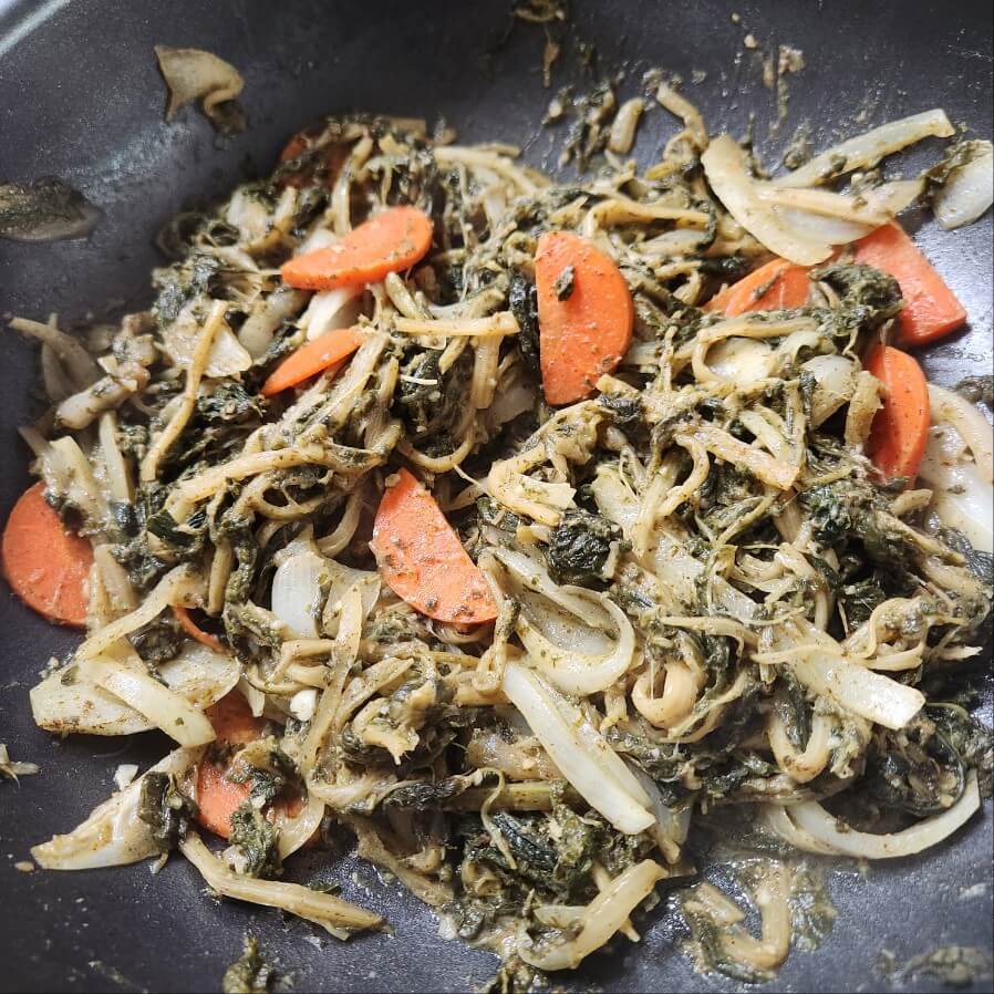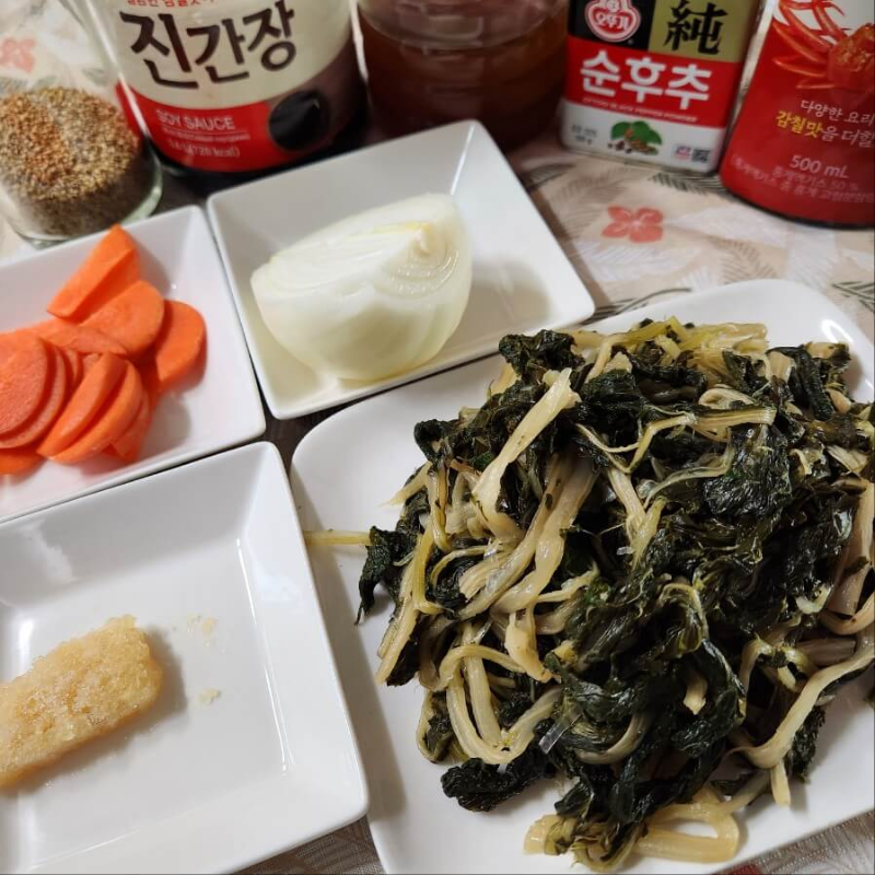 - 시래기 335g, 양파 반개, 마늘 1 숟가락 16g, 당근