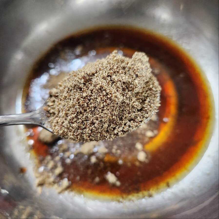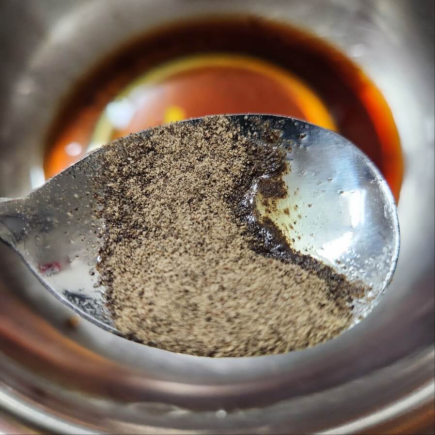 - 숟가락 기준으로 간장 5, 후추 0.3 취향것 , 들깨가루 3, 들기름 2