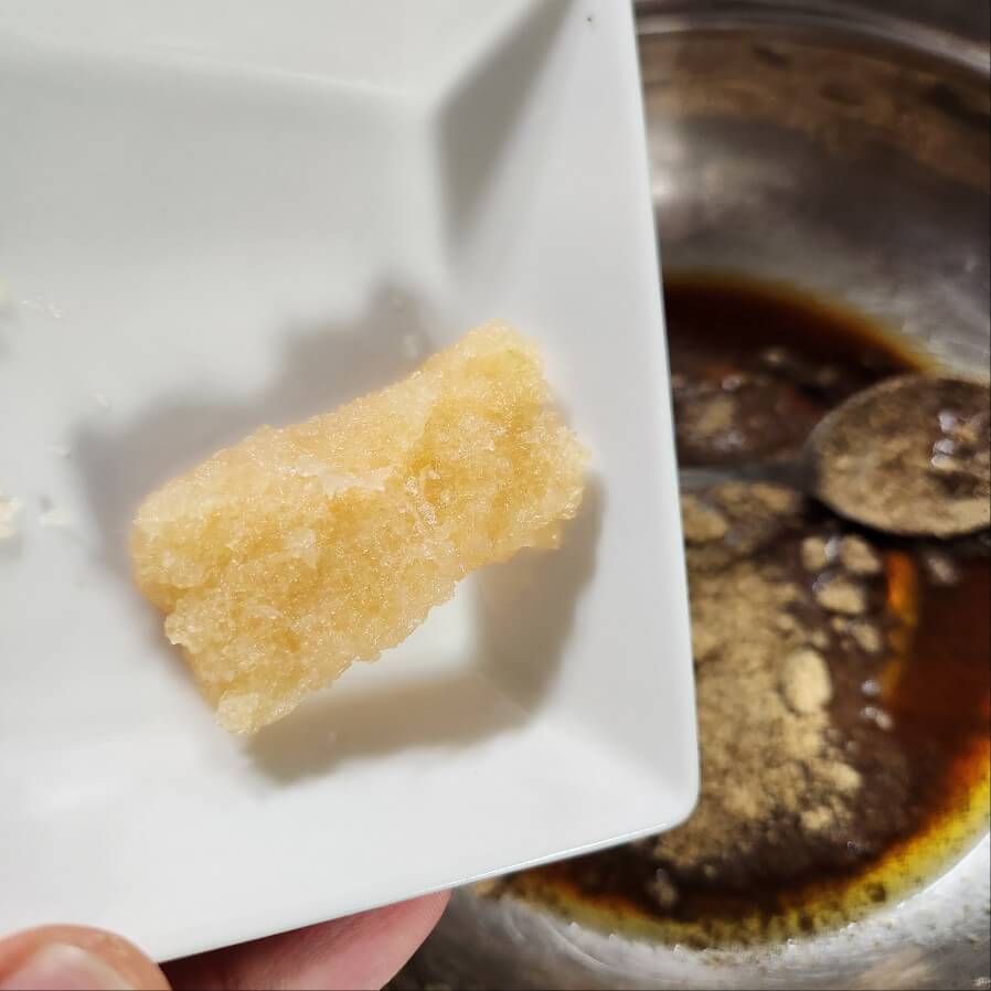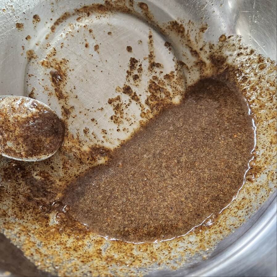 2. 시래기 볶음 양념장은 숟가락 기준으로 간장5, 홍게액 1, 들기름 2, 들깨가루 3, 후추 0.3 넣고 취향것 추가로 더 넣어 된다. 마늘 1 (16g)_ 을 넣고 잘 섞어주시면 된다.