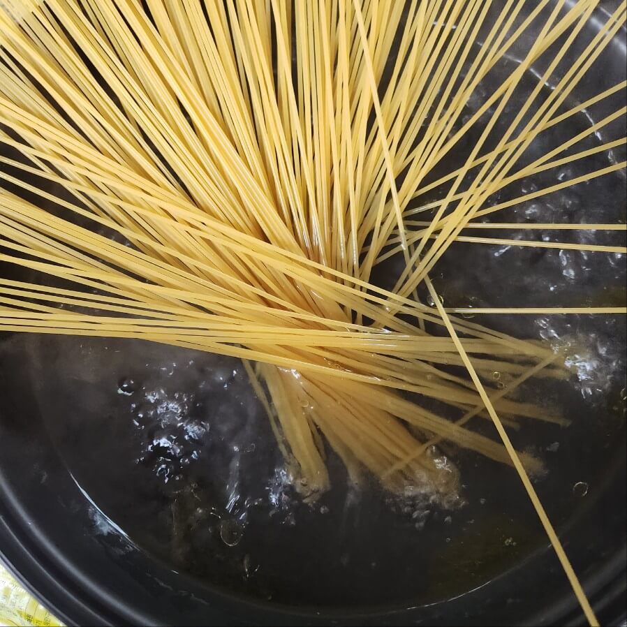 👉냄비에 적당량의 물을 붓고 소금 1, 올리브유 1을 넣고 끓는 물에 파스타 면 7분 ~ 10분 삶아주면 된다.