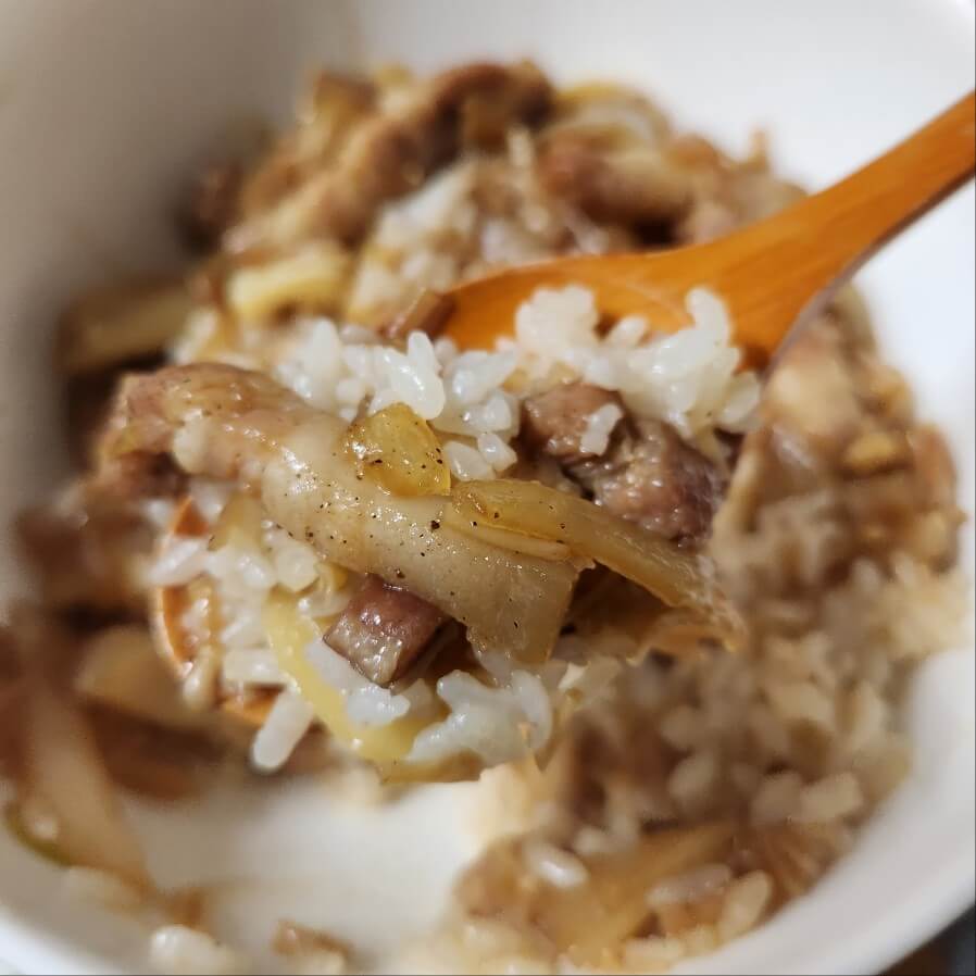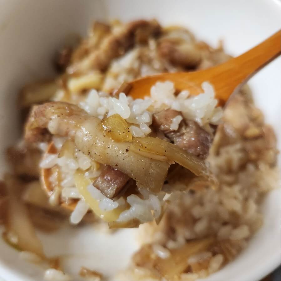 7. 오래된 삼겹살로 만든 간장 삼겹살 덮밥이다. 설탕에 삼겹살을 10분 정도 감 궈서 잡내, 연육작용이 되어 부드러우면서 냄새가 나지 않는다.