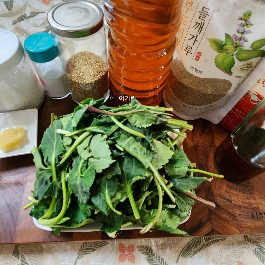 - 취나물 1팩, 천일염, 통깨, 구운소금, 들기름, 다진마늘, 홍게액
