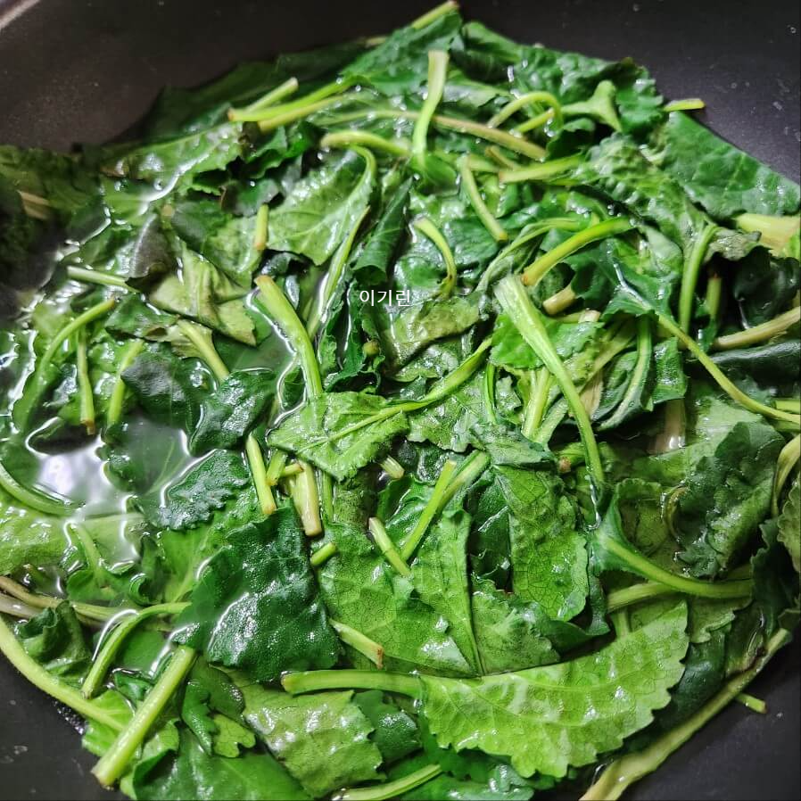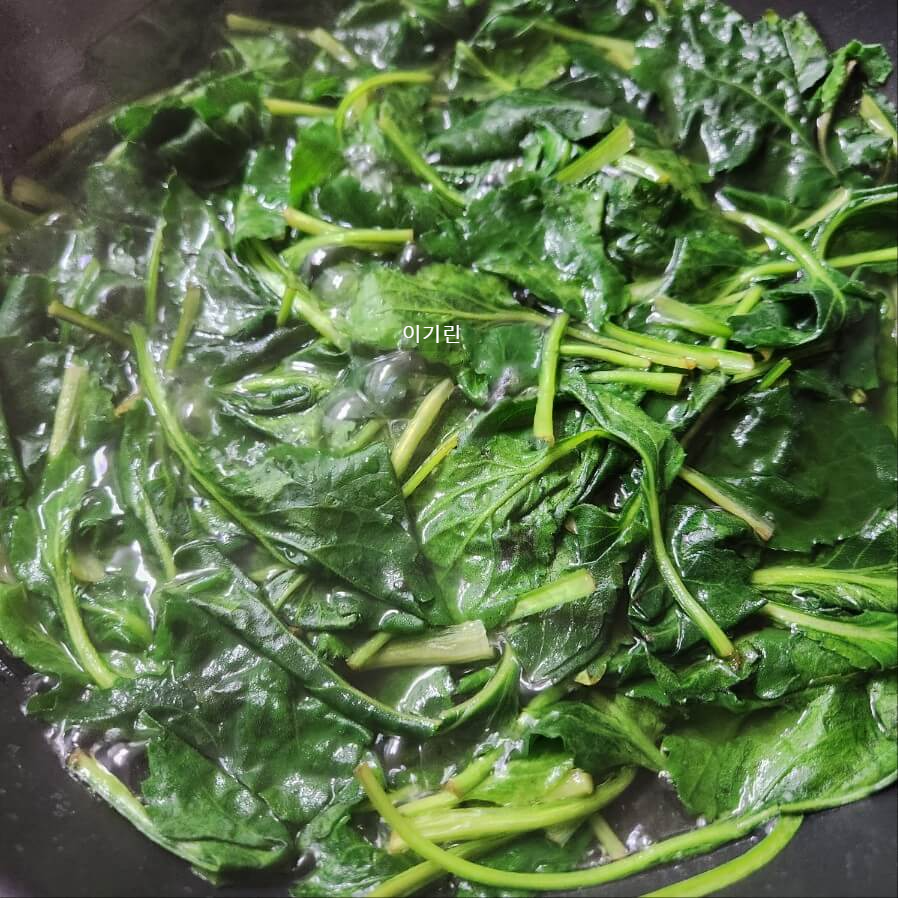 👉앞면 1분, 뒤접어서 1 분 센불로 데치고 물기를 꼭 짜서 준비해 주면 된다.