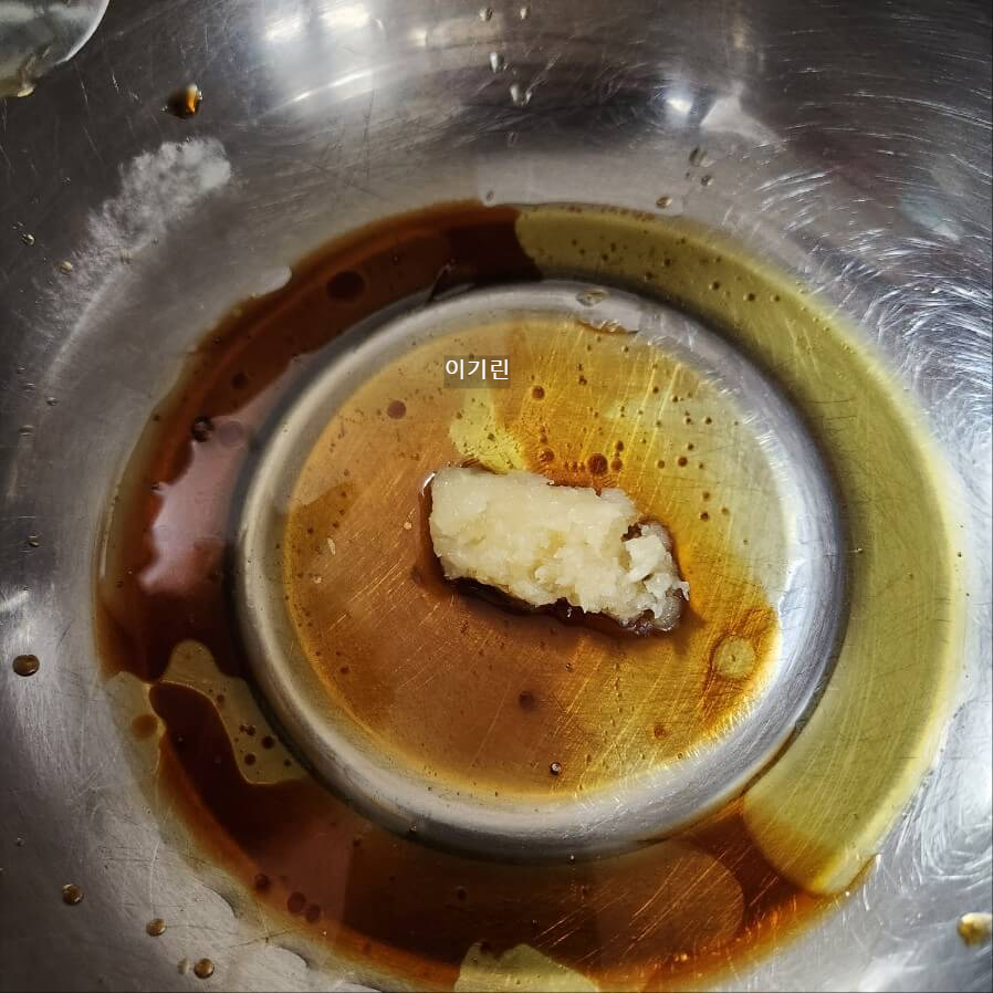 3. 숟가락 기준으로 홍게액젓 1, 들기름 1, 다진마늘 0.5 (10g) 을 넣고 취나물을 버무려 주면 된다.